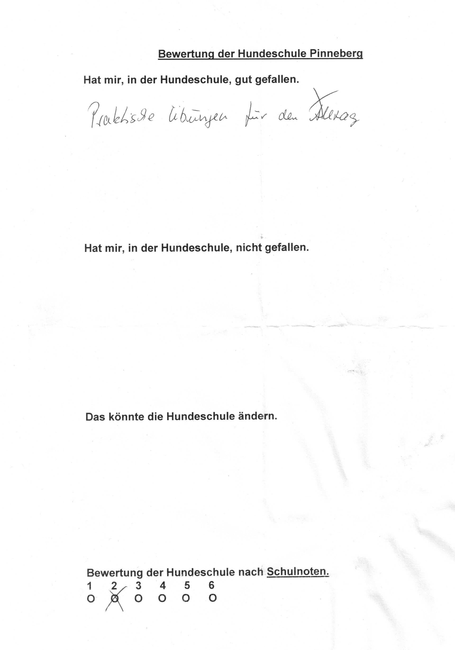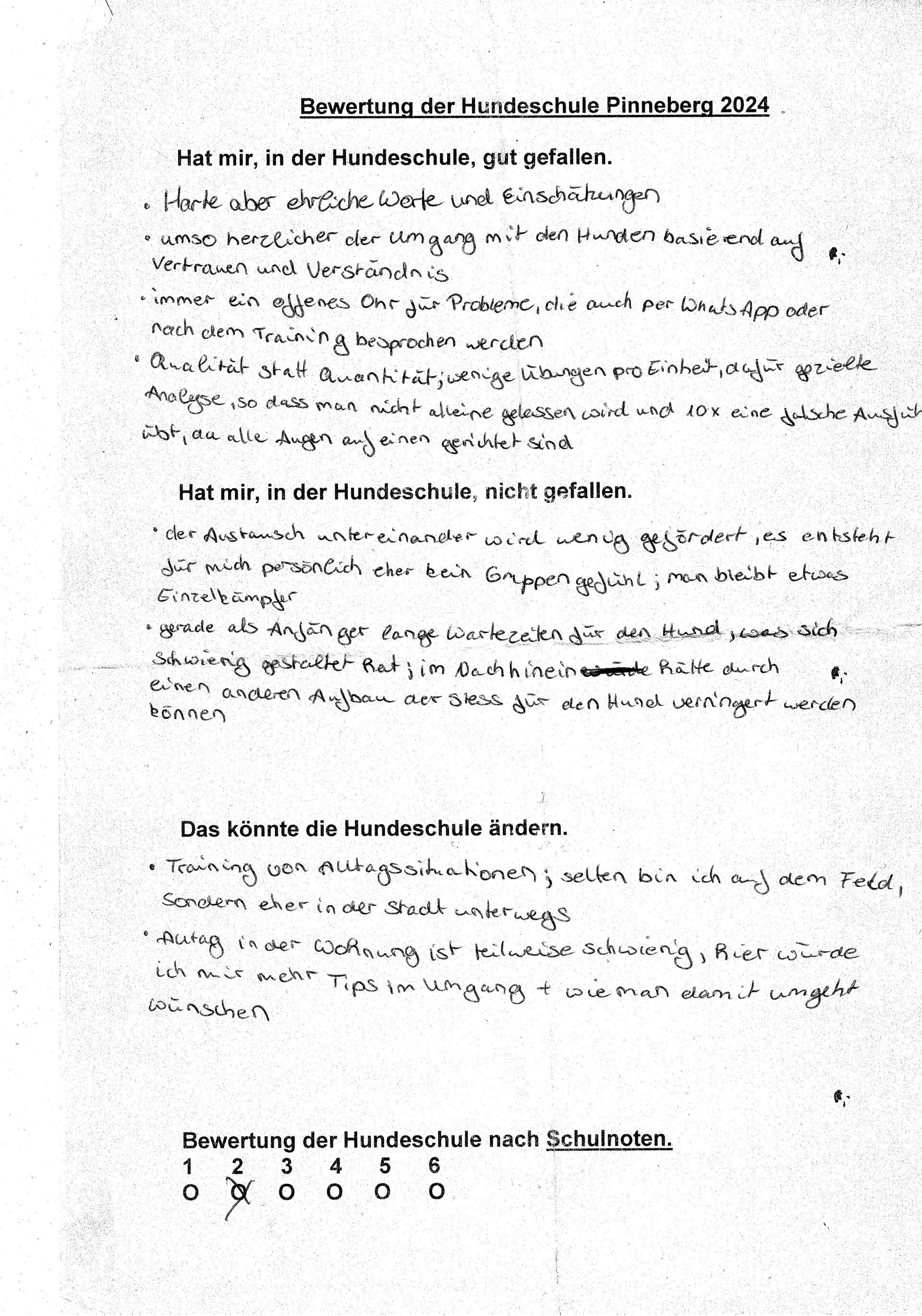 Ich verteile, jedes Jahr zum Dezember, einen Bewertungsbogen an die Hundeführer in meiner Hundeschule.